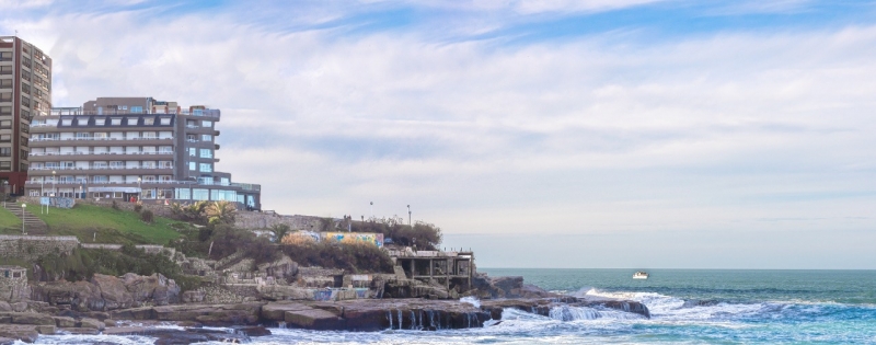 El Hotel Las Rocas tiene una ubicación de privilegio, frente al mar y muy próximo a los balnearios de Playa Grande y Varese, puertos náuticos y centros comerciales, rodeado de las mejores ofertas gastronómicas y a pasos del Golf Club Mar del Plata.